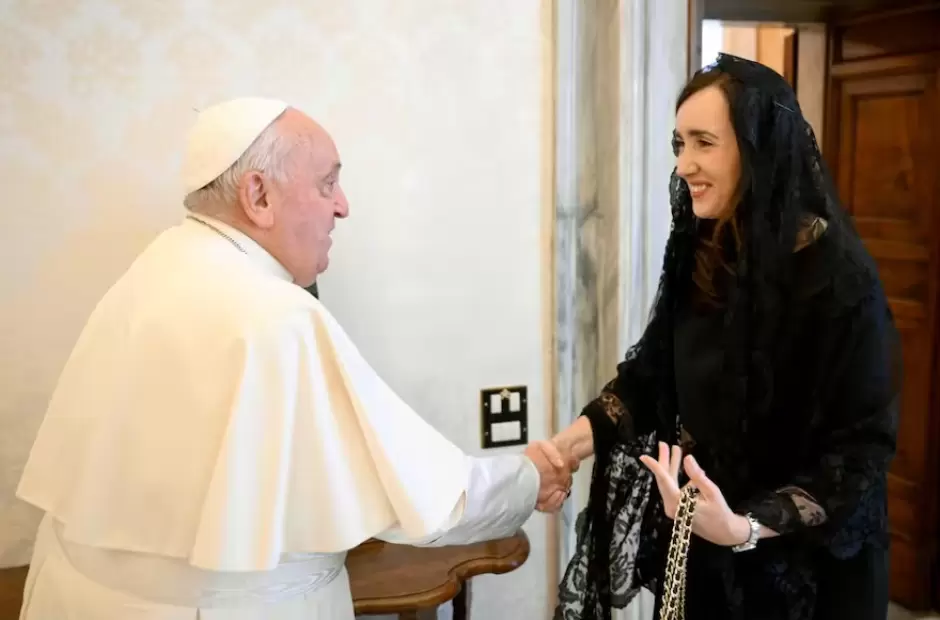 "La reunión duró casi una hora en un clima de mucho afecto, con demostraciones de cariño de parte del Sumo Pontífice hacia la figura de la presidente del Senado argentino. La conversación giró sobre varios temas y, el que como es habitual de su parte, su Santidad manifestó su interés por la situación de nuestro país", dijeron fuentes cercanas a la vicepresidenta. "Francisco se mostró contento con el encuentro y agradecido con la visita y el presente que Villarruel le llevó especialmente desde la Argentina: una estatua de un caballo con su potrillo. Además, ella le obsequió un dulce español y él le entregó un Rosario bendecido junto a otros presentes", agregaron.