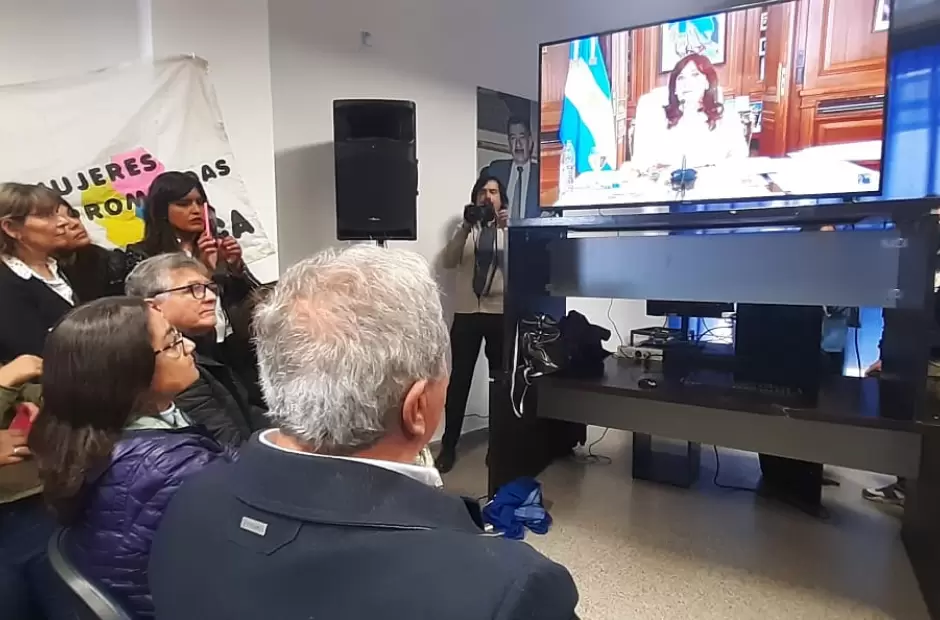 Allí un nutrido grupo de militantes, dirigentes y funcionarios se dieron cita y escuchan la "defensa" de Cristina Fernández de Kirchner.