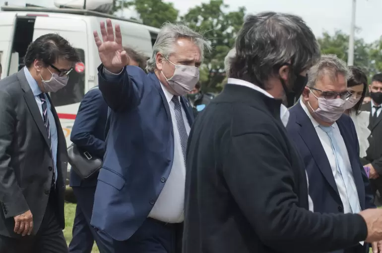 Previo a la conferencia que se transmitió en vivo por las redes sociales oficiales, Fernández saludó a los mandatarios presentes y a la prensa, que desde temprano esperó la orden para poder ingresar.