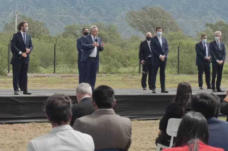 El arribo del presidente Alberto Fernández tuvo lugar minutos antes de las 13 hs en el Aeropuerto Felipe Varela ante una gran cantidad de funcionarios que lo esperaban.