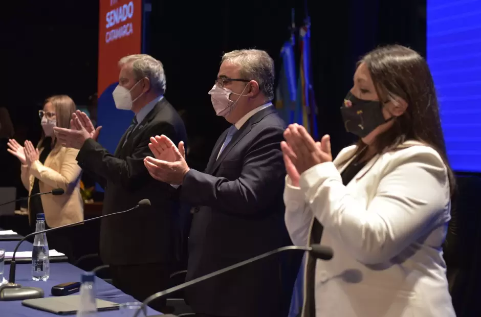 El discurso de Jalil tuvo lugar en el Cine Teatro Catamarca, donde solo pudieron ingresar los legisladores provinciales, quienes estuvieron sentados cada tres butacas, para respetar las normas del distanciamiento social.