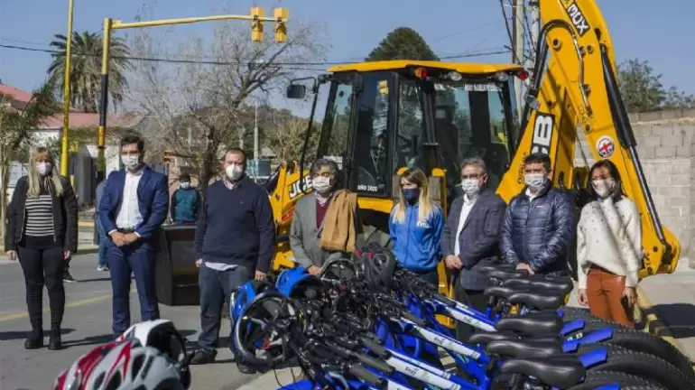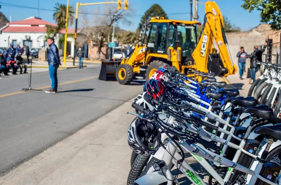 En un acto realizado hoy, frente a la Intendencia de Riego en el departamento Fray Mamerto Esquiú, el gobernador Raúl Jalil, entregó al intendente, Guillermo Ferreyra 30 bicicletas eléctricas “bes” rodados 26 y una retro pala destinada al área de obras públicas.
