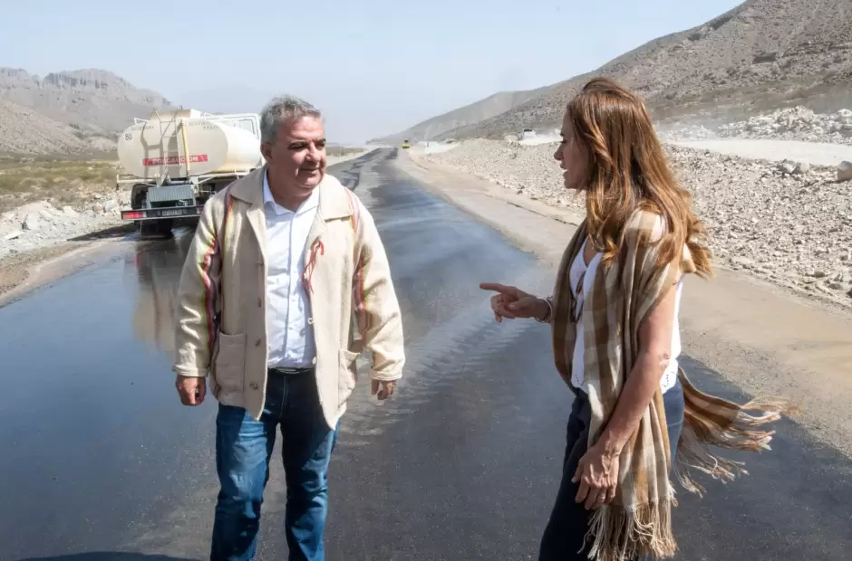En el cierre de la agenda de actividades que desarrolló en el oeste catamarqueño el gobernador Raúl Jalil, junto a la ministra de Desarrollo Social de la Nación, Victoria Tolosa Paz, recorrieron la obra de pavimentación que se está ejecutando en la Ruta Provincial 43, en el tramo de Barranca Larga-Cuesta de Randolfo.