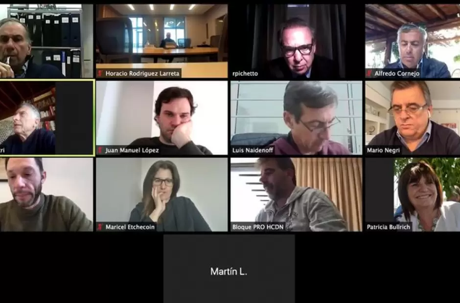 Del encuentro virtual participaron, por el PRO, Mauricio Macri, Horacio Rodríguez Larreta, Patricia Bullrich y Humberto Schiavoni; por la UCR, Alfredo Cornejo, Mario Negri y Luis Naidenoff, y por la Coalición Cívica, Maximiliano Ferraro, Juan Manuel López y Maricel Etchecoin.