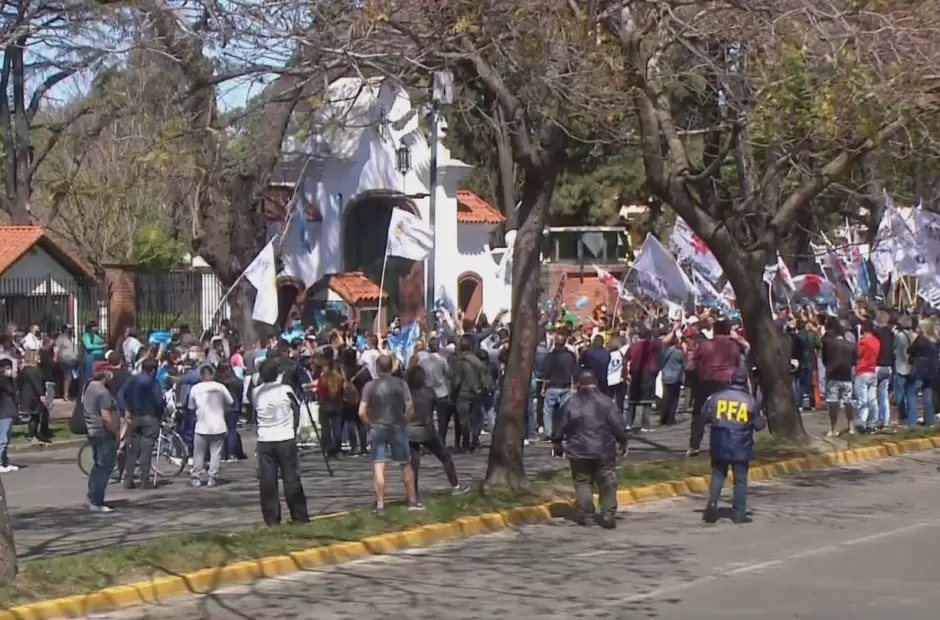 Las organizaciones políticas que se manifiestan frente a la Quinta de Olivos son militantes del Partido del Trabajo y la Equidad y del Movimiento Octubres, afines al oficialismo.
