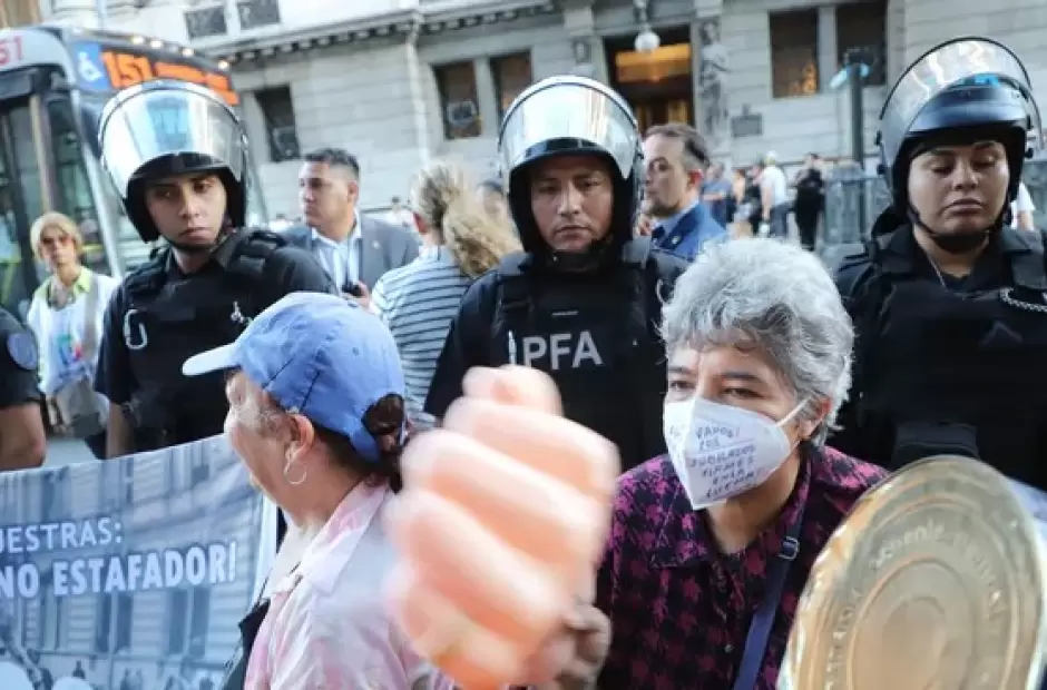 Los manifestantes intentaron cortar la Avenida Callao, pero las fuerzas de seguridad activaron el protocolo antipiquetes para despejar la zona. En respuesta, los jubilados esperan cada semáforo en rojo para bajar a la calle de Rivadavia y Callao, mostrando carteles con consignas como "Ayúdame a luchar. El próximo viejo sos vos".