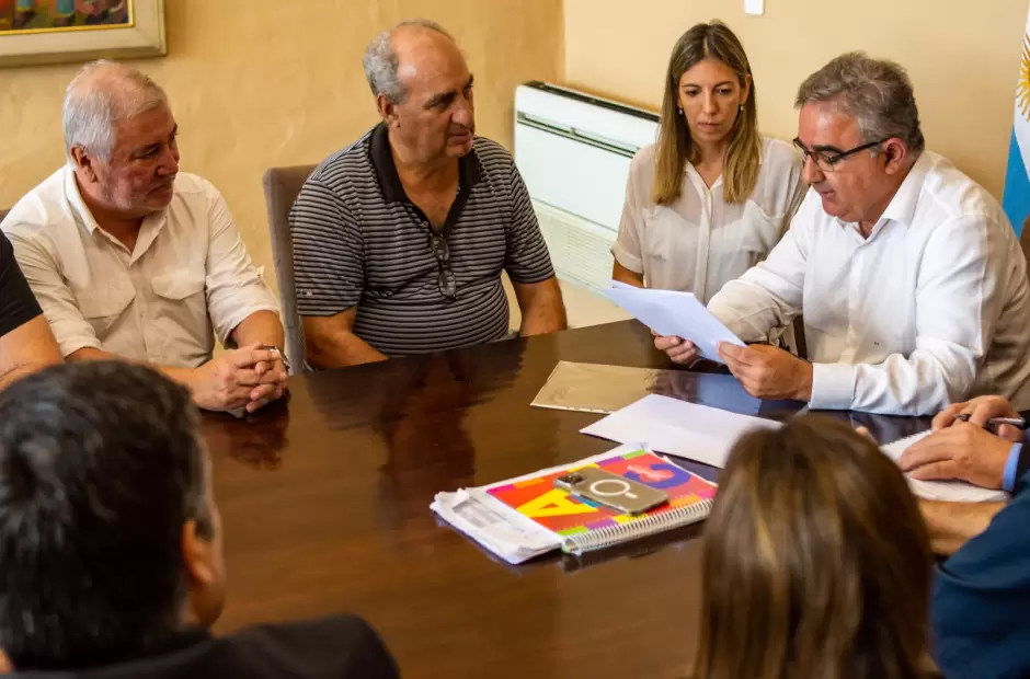 El gobernador Raúl Jalil, junto al vicegobernador Rubén Dusso, ministro de Infraestructura y Obras Civiles, Eduardo Niederle y de Economía, Alejandra Nazareno, mantuvo una reunión con miembros de la Cámara de la Construcción donde se consensuó la adhesión a este régimen que actualmente se aplica en las obras de viviendas.