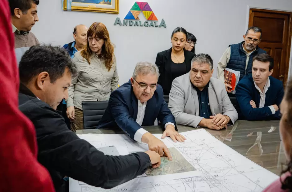 En el inicio de una nueva recorrida por Andalgalá, el gobernador Raúl Jalil encabezó una reunión de trabajo junto al intendente Eduardo Córdoba, el senador departamental Horacio Gutiérrez y equipos técnicos del gobierno provincial y municipal, con el objetivo de planificar y coordinar obras claves que se ejecutarán en el departamento.