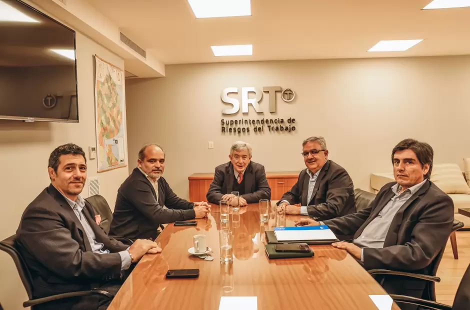 En la reunión también participaron el gerente general de la Superintendencia de Riesgos del Trabajo (SRT), Fernando Pérez y el asesor de gabinete, Sebastián Velesquen; y el ministro de Minería, Marcelo Murúa.