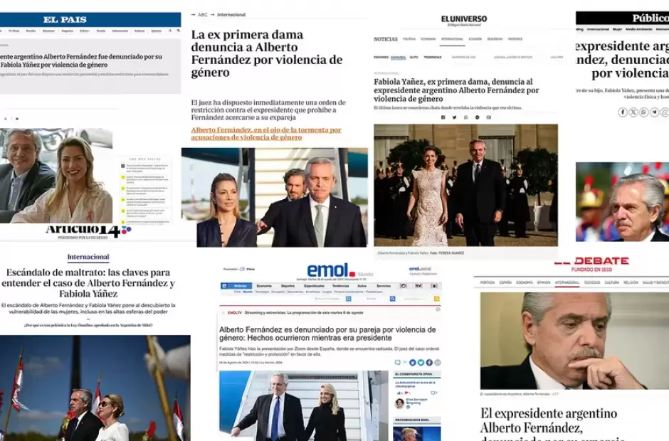 “El expresidente argentino Alberto Fernández, denunciado por su expareja por violencia machista”, fue el titular de Público, de España. Dentro de la nota, se indica que “consultado por EFE sobre la denuncia, el político peronista se limitó a comentar que 'es un momento muy ingrato' y que, por el momento, no hará declaraciones en los medios”. En el país ibérico, El Debate se pronunció de una manera muy similar.