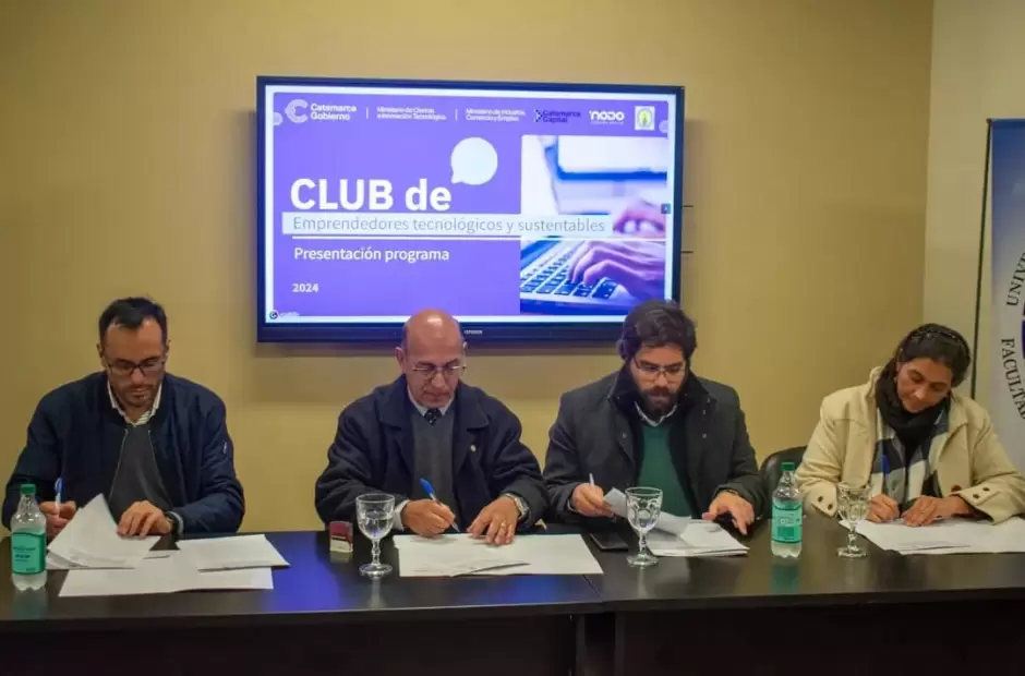 En una acción conjunta, entre el gobierno de la provincia a través de los ministerios de: Ciencia e Innovación Tecnológica ; Industria, Comercio y Empleo ; el Nodo Tecnológico de la Municipalidad de la Capital ; y la Facultad de Tecnología y Ciencias Aplicadas de la UNCA, se presentó el programa "Club de Emprendedores Tecnológicos y Sustentables". El lanzamiento que estuvo encabezado por las principales autoridades de los organismos intervinientes, tuvo lugar el pasado martes en el Auditorio Dr. Raúl Alfonsín de la Universidad Nacional de Catamarca.