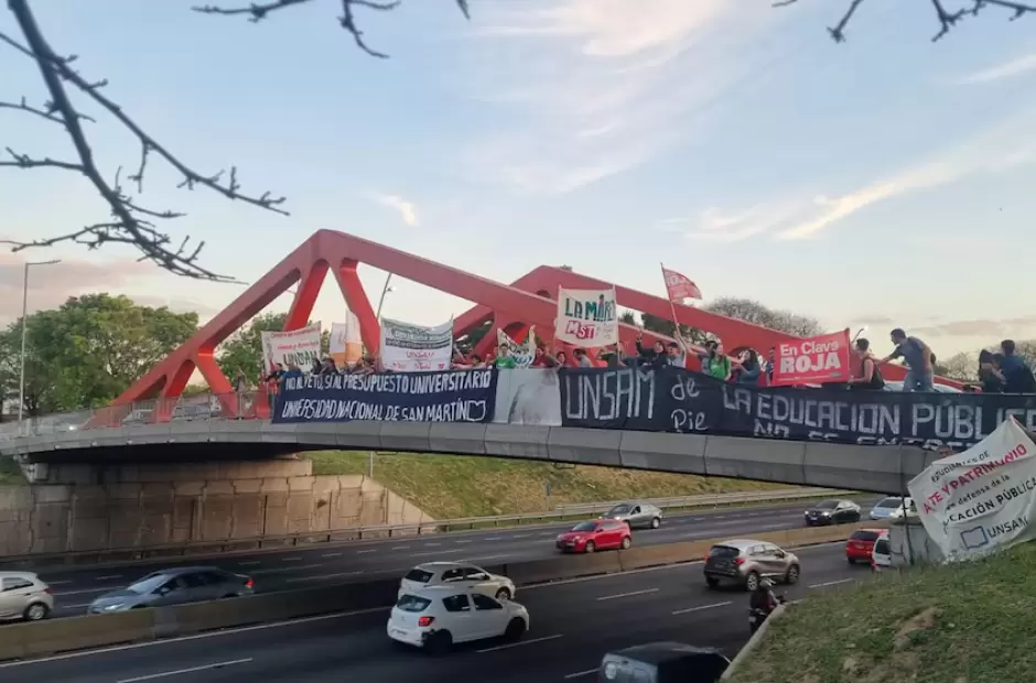 En la Universidad Nacional de San Martín (UNSAM), cientos de estudiantes participaron en manifestaciones que incluyeron cortes en la avenida General Paz. Los manifestantes colgaron una bandera gigante en un puente de la autopista, exigiendo mayor financiamiento para la educación pública.