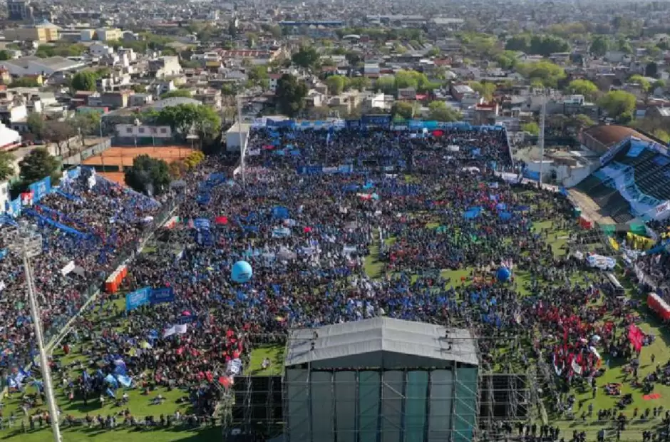 Miles de militantes colmaron el estadio de Nueva Chicago, en un plenario de las organizaciones sociales y movimientos populares que integran el Frente de Todos (FdT) (Foto: Télam).