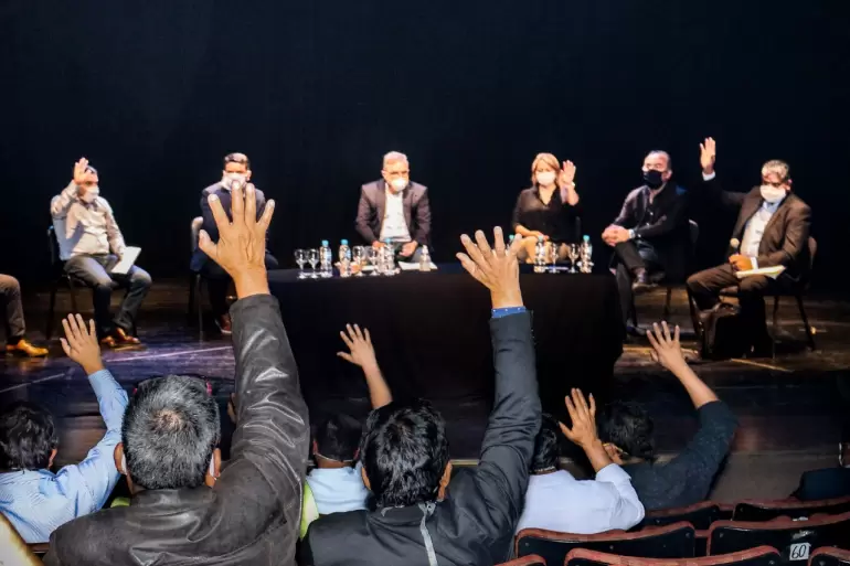 Asimismo, contó que en la charla que mantuvo con los representes de los trabajadores les dijo que debido a su formación profesional y política, no está en sus planes “ni reducir sueldos, ni despedir a nadie”. Recordó la herencia de Lucía Corpacci de 5 mil trabajadores ingresados los últimos días de la gestión de Eduardo Brizuela del Moral y ratificó su postura de no dejarlos sin su fuente laboral, pero advirtió la necesidad de “reordenar a la gente, más aún si esto (la pandemia) sigue como se estima que va a seguir, más allá que llevamos 4 meses y la mitad de la humanidad está encerrada en su casa, tenemos que preparar el sistema de salud y la contención social. Vamos a avanzar con la descentralización. Este es un primer paso”, aseguró.