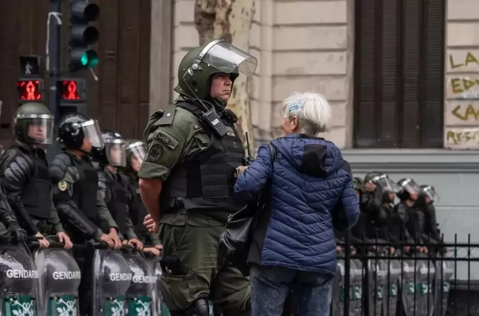 Referentes de las organizaciones de Izquierda pidieron que las personas se ubiquen sobre la vereda, al ver el avance de las motos de los efectivos de la Policía en Avenida de Mayo y 9 de Julio y empezó la desconcentración.