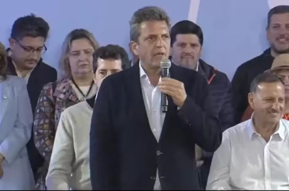 Acompañado por su compañero de fórmula y jefe de Gabinete, Agustín Rossi, el ministro del Interior y precandidato a senador nacional, Eduardo 'Wado' de Pedro, y los mandatarios provinciales Gerardo Zamora (Santiago del Estero) y Raúl Jalil (Catamarca), Massa criticó en duros términos a la oposición.