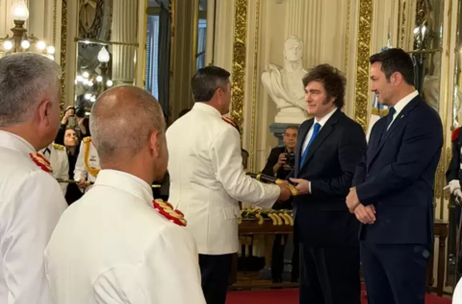 La ceremonia se llevó a cabo en el Salón Blanco de la Casa Rosada, donde Milei se ubicó en el centro del estrado junto al ministro de Defensa saliente, Luis Petri, y a quien lo reemplazará en el cargo, el teniente general Carlos Alberto Presti. La presencia de ambos funcionarios marcó una transición clave dentro de la conducción del área de Defensa, en un momento en el que las Fuerzas Armadas tramitan nuevos lineamientos estratégicos impulsados por el Gobierno nacional.