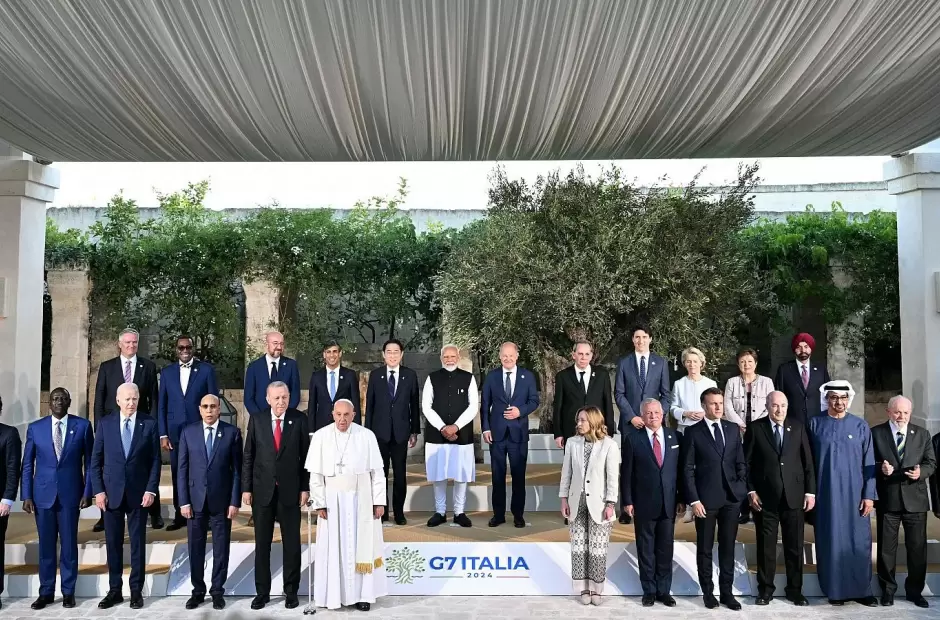 Luego, el mandatario argentino se colocó para la foto de familia ampliada del G7, con los integrantes del grupo y todos los jefes de Estado y representantes de organizaciones invitados al evento.