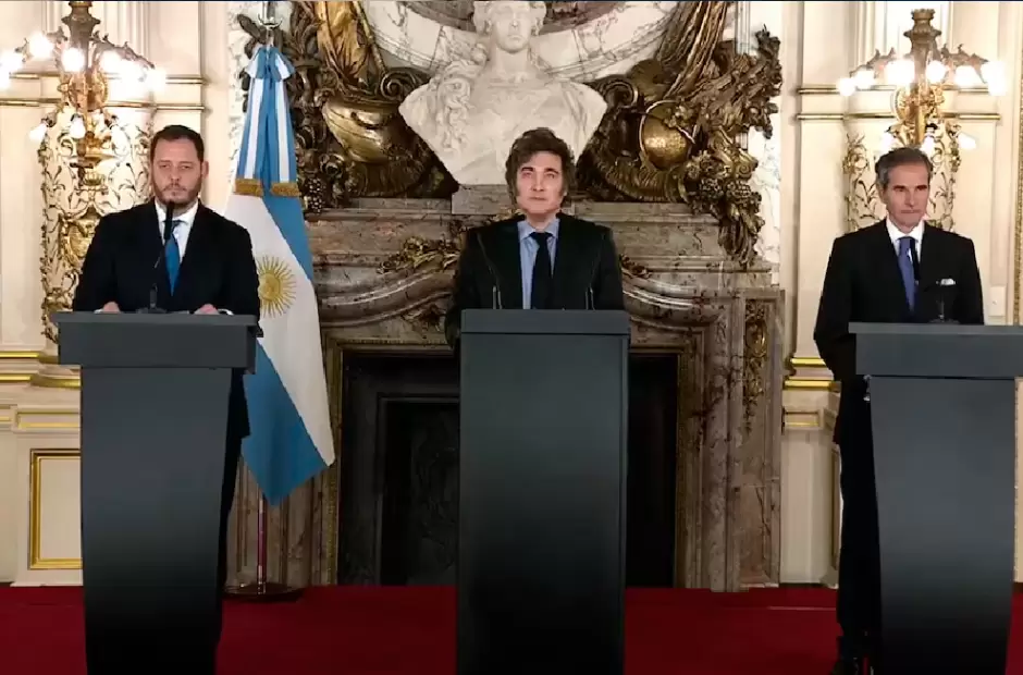 El presidente Javier Milei presentó oficialmente el Plan Nuclear Argentino , destacando que el país será un actor clave en el desarrollo de la energía nuclear a nivel mundial. Durante el evento realizado en la Casa Rosada, estuvo acompañado por Demián Reidel, jefe del Consejo de Asesores, y Rafael Grossi, director general del Organismo Internacional de Energía Atómica (OIEA).