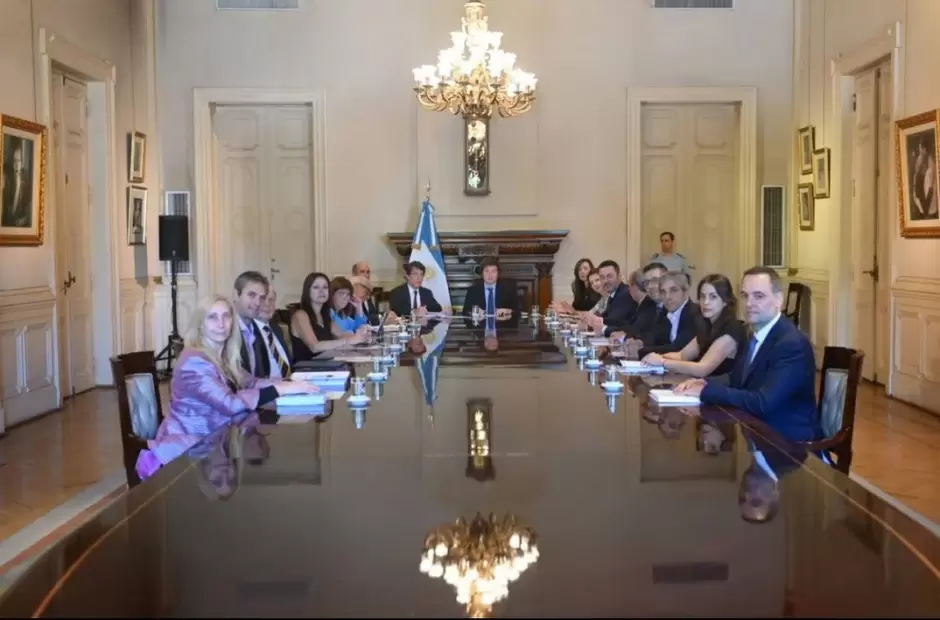 Sin la canciller Diana Mondino, con agenda en Japón, Guillermo Francos (Interior), Mario Russo (Salud), Patricia Bullrich (Seguridad), Sandra Pettovello (Capital Humano) y Luis Petri (Defensa) participan en el intercambio junto a la flamante fórmula de La Libertad Avanza y al jefe de Gabinete, Nicolás Posse.