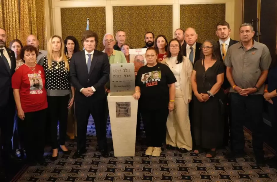 El presidente Javier Milei mantuvo este miércoles en Jerusalén un encuentro con familiares de ciudadanos argentinos secuestrados por Hamas durante el ataque del 7 de octubre, en el marco de su gira oficial por Israel. El mandatario también participó del descubrimiento de un monolito en homenaje a las víctimas y reafirmó el "compromiso incondicional" de la Argentina con la liberación de los rehenes.