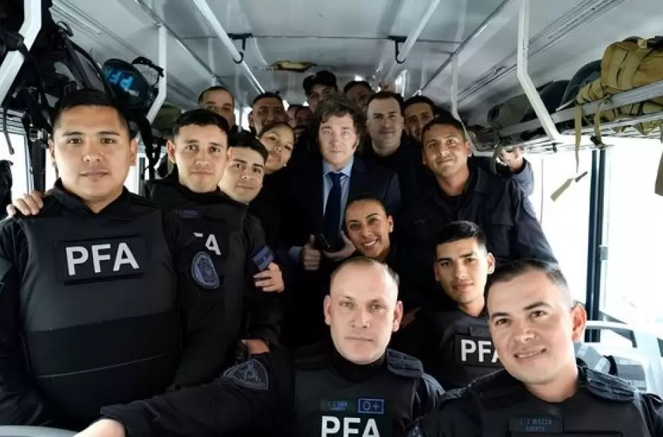 "El Presidente Javier Milei se subió a un colectivo de la Policía Federal y saludó a los efectivos que se encontraban trabajando afuera de la Casa Rosada", indicó en un tuit la Oficina del Presidente.