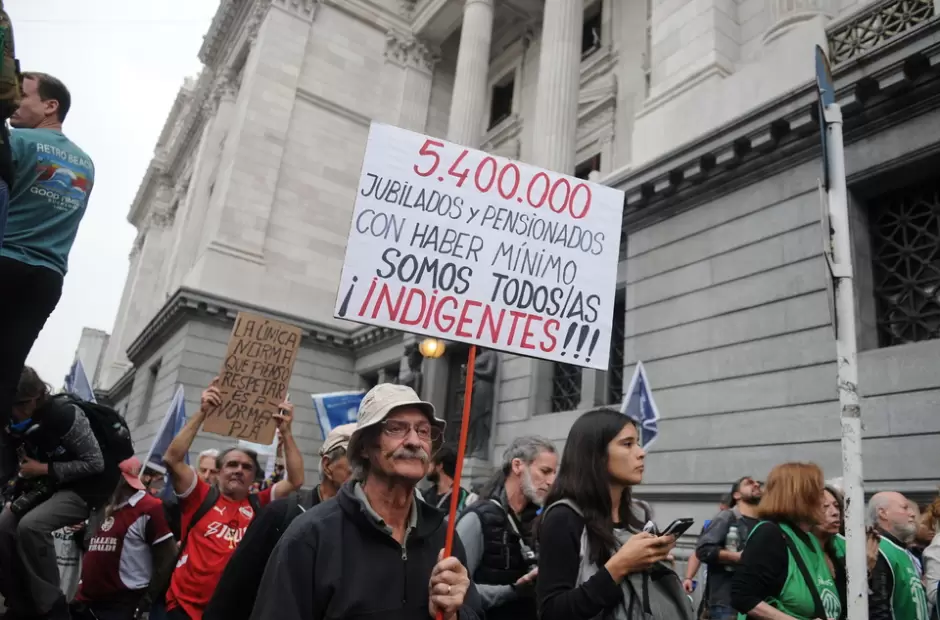 Los jubilados se movilizaron hoy en una nueva edición de las tradicionales protestas semanales del sector, en reclamo de un aumento de los haberes y contra el veto del presidente Javier Milei a la ley de actualización previsional.