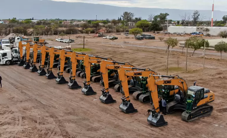 La Provincia recibió 11 máquinas Excavadoras 0 Km que serán destinadas a las distintas obras que realizan en todo el interior los ministerios de Obras e Infraestructuras Civiles y de Agua, Energía y Medio Ambiente.