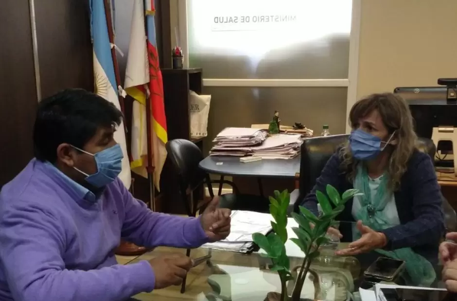 La ministra de Salud de la provincia, Claudia Palladino, recibió en su despacho al intendente de Antofagasta de la Sierra, Julio Taritolay, para avanzar en la planificación y concreción de tareas conjuntas para el fortalecimiento del sistema de salud en la zona. Participaron también de la reunión la secretaria de Asistencia en Salud Pública, Manuela Ávila y el secretario de Interrelación Municipal, Horacio Sierralta.