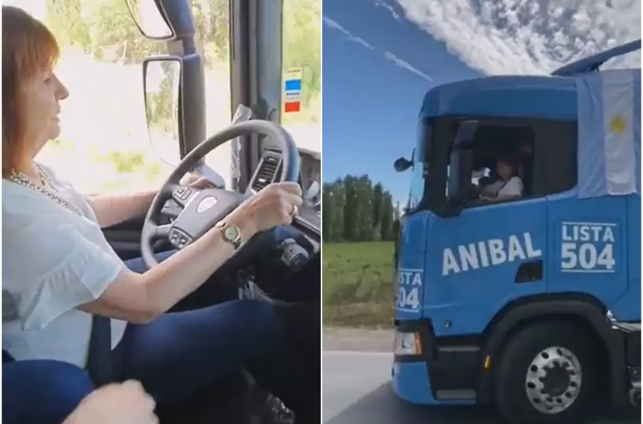 En el video que la ex ministra de Seguridad subió a su cuenta de Twitter y tuvo una importante repercusión en la red social, con miles de reproducciones, se la puede ver a la ex ministra de Seguridad sonriente mientras sale de la ruta e ingresa a un predio haciendo sonar la bocina del camión.
