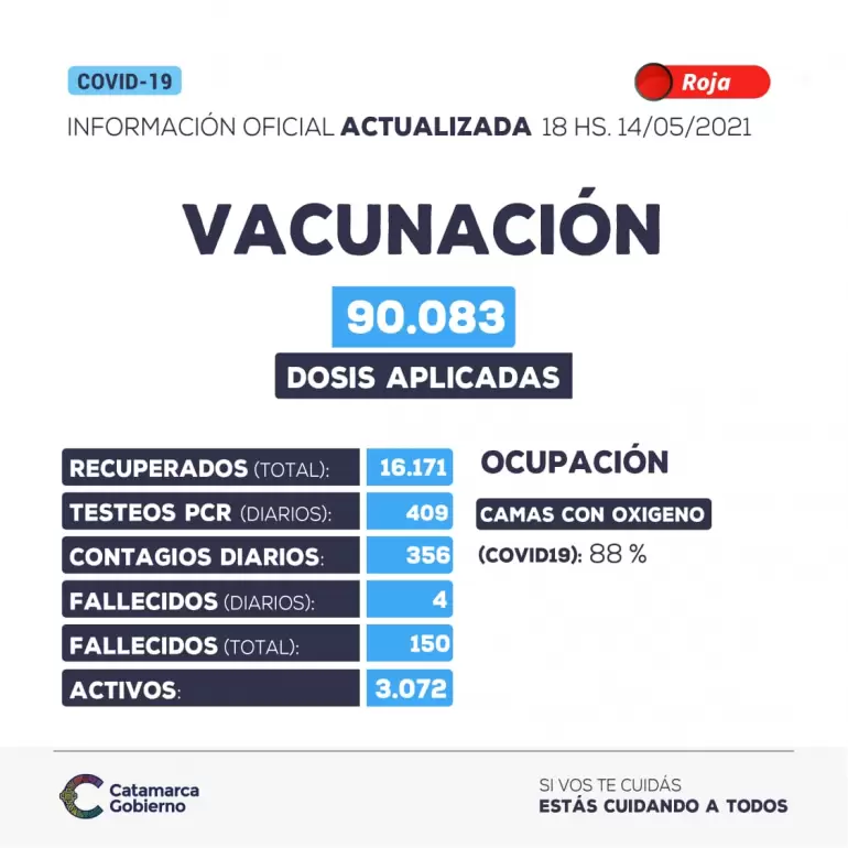 Hasta las 18 horas del viernes 14 de mayo se detectaron 356 nuevos casos positivos de coronavirus en la provincia de Catamarca. El total acumulado de casos positivos detectados asciende a 19.393.