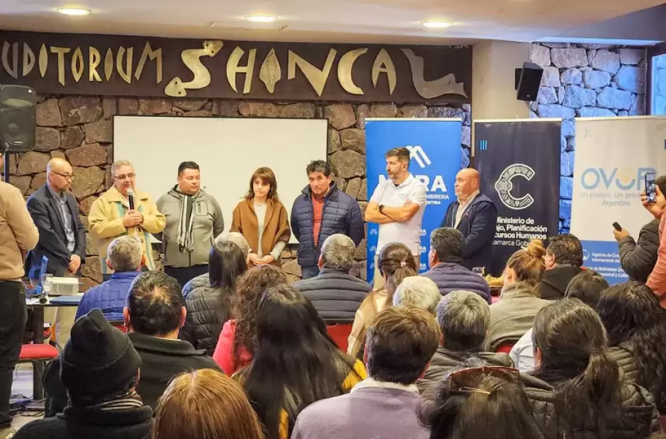 Verónica Soria, ministra de Trabajo, Planificación y Recursos Humanos, Responsable del Proyecto OVOP Catamarca, Takashi Aoki, líder del proyecto OVOP de JICA (Agencia de Cooperación Internacional de Japón) junto al experto en turismo, Antonio del Rosal, y el coordinador del proyecto OVOP Argentina del Ministerio de Desarrollo Social de Nación, Gastón Lopez Seoane, presentaron ante el gobernador, intendentes, funcionarios, emprendedores y vecinos, los logros, avances, y desafíos futuros del proyecto.