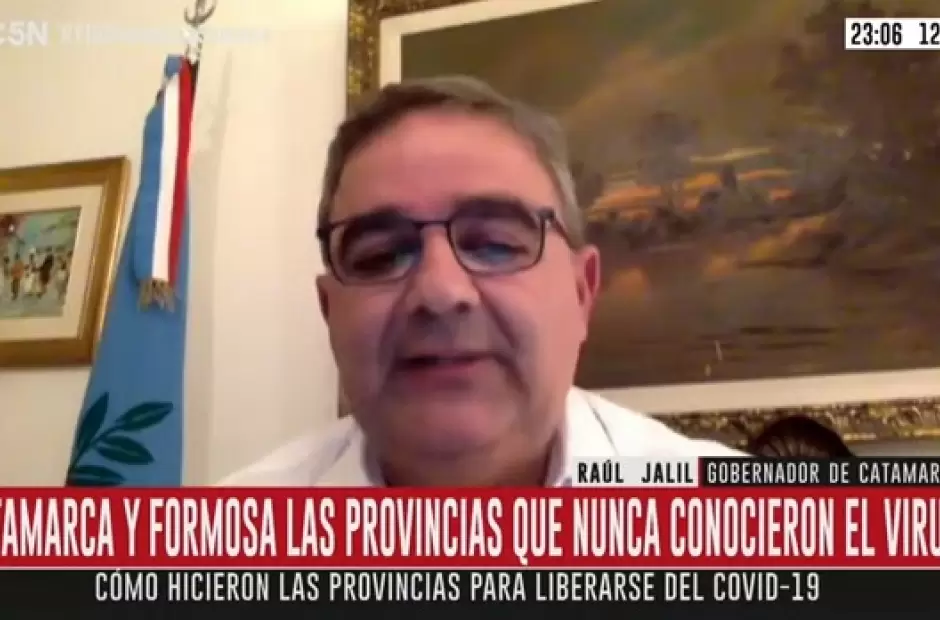 El gobernador de la provincia, Raúl Jalil, participó de una entrevista a través del programa "El último de la semana" emitido por el canal C5N, en el cual dialogó sobre las medidas de prevención que se llevan a cabo en Catamarca para combatir a la pandemia del coronavirus y manifestó que el 80% de las actividades están flexibilizadas y esto se debe "al compromiso de la gente".