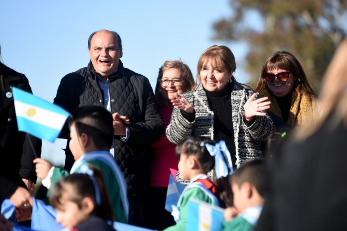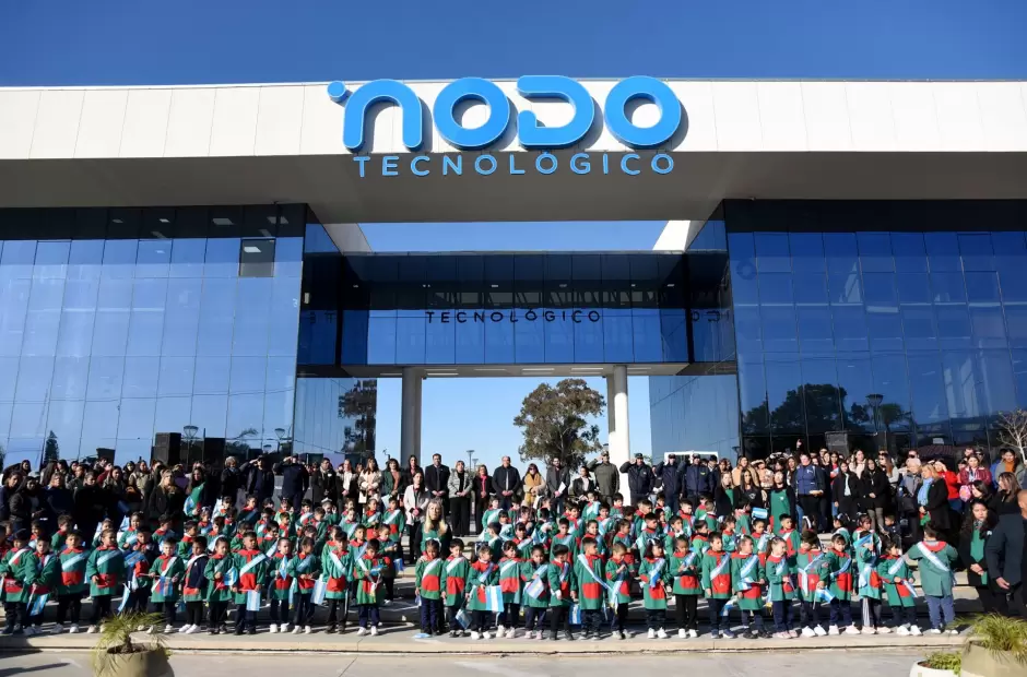 En un emotivo acto más de 300 niños del Centro de Estimulación de Infancia y Familias (CEIyF) participaron de un banderazo simbólico en la capital. El evento, que tuvo lugar en el ingreso al Nodo Tecnológico, fue encabezado por el intendente Gustavo Saadi, quien tomó la promesa simbólica de amor a la Bandera Nacional a los alumnos de la sala de 5 años del Sistema Educativo Municipal (SEM).