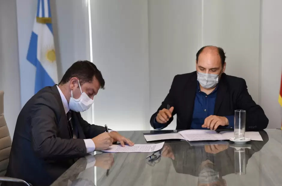 Participaron de la rúbrica, el Intendente de la Capital, Dr. Gustavo Saadi, el presidente del Colegio de Abogados, Dr. Alexis Russo, las coordinadoras de las Comisiones de Género y Derecho Ambiental, Dras. Ana Clara Barros, y Ana Carolina Miranda, la directora del Centro de Mediación, Dra. María Antonia Rojo y el Dr. Marcelo González, miembro del Consejo Directivo del Colegio.