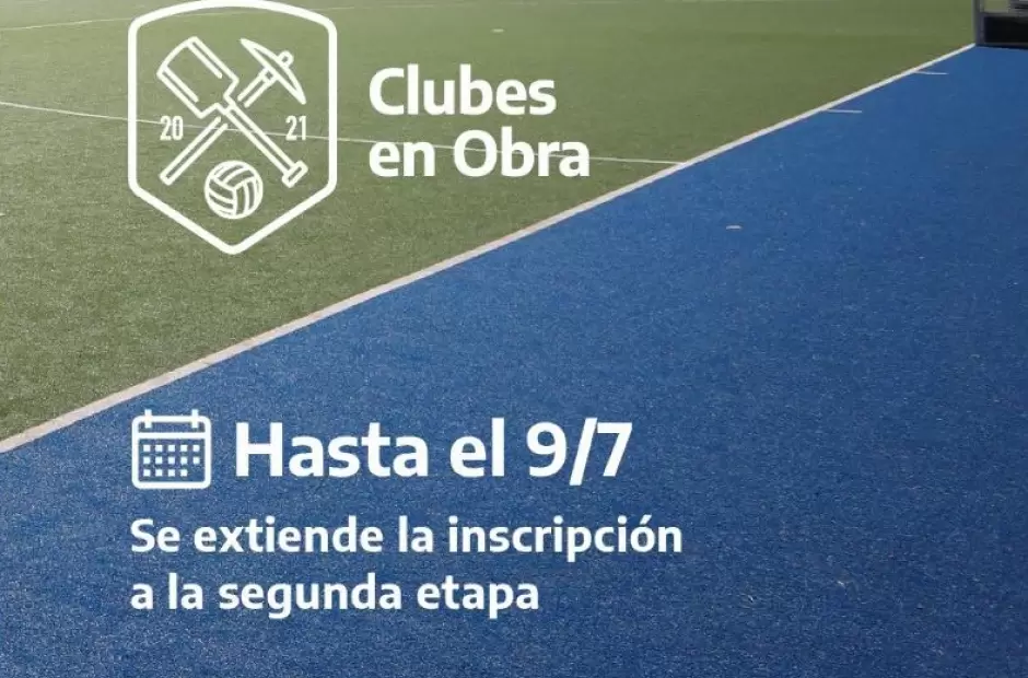 El Programa Nacional Clubes en Obra, a cargo de la Subsecretaría de Infraestructura Deportiva y Competencias Nacionales, que encabeza Sergio Palmas, dependiente del Ministerio de Turismo y Deportes de la Nación, que dirige Matías Lammens amplió sus inscripciones de la segunda etapa hasta el próximo 9 de julio para que las entidades deportivas apliquen para el aporte económico, que este año es de 600 mil pesos, para mejorar, ampliar y renovar sus infraestructuras.