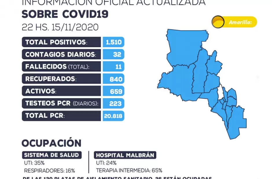 En su informe diario sobre la situación epidemiológica provincial, el COE comunicó que en la madrugada de ayer, falleció en el Hospital Carlos Malbrán un hombre de 76 años, que había sido derivado del sector privado de la salud con diagnóstico positivo para COVID-19. Se trataba de un paciente oriundo de Capital que tenía antecedente patológico de hipertensión arterial, entre otros. El deceso fue producto de una neumonía grave por COVID-19.