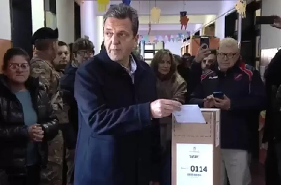 El ministro de Economía y precandidato presidencial de Unión por la Patria (UxP) emitió su voto en el establecimiento escuela secundaria número 45, en Alvear 1430, partido de Tigre.