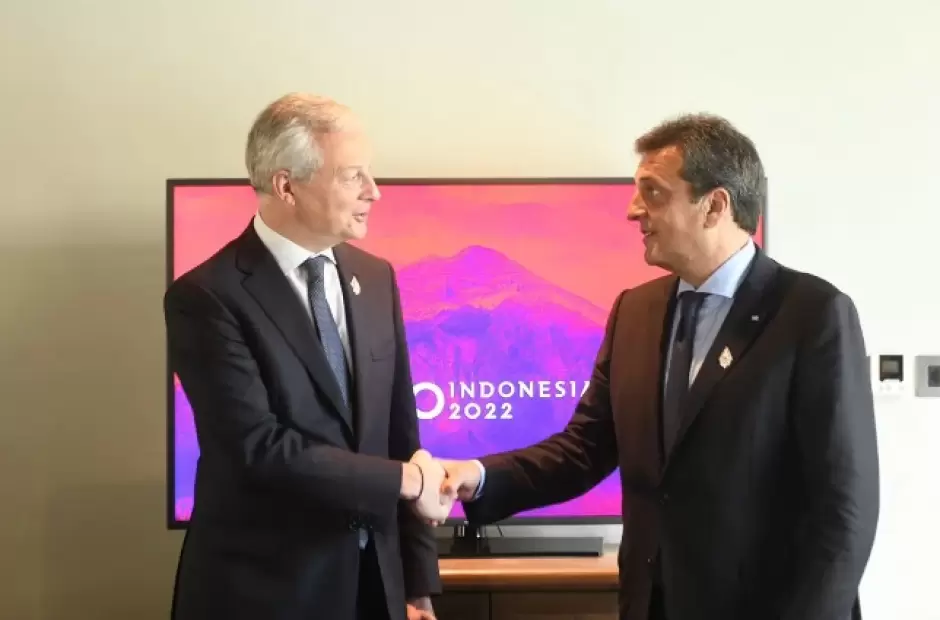 En el marco de la reunión del G20 en Indonesia, el ministro de Economía Sergio Massa participó este miércoles de un encuentro con su par francés Bruno Le Maire, del cual también formaron parte el Director General del Tesoro Emmanuel Moulin, la vicejefe del gabinete de Le Maire, Morgane Weill.