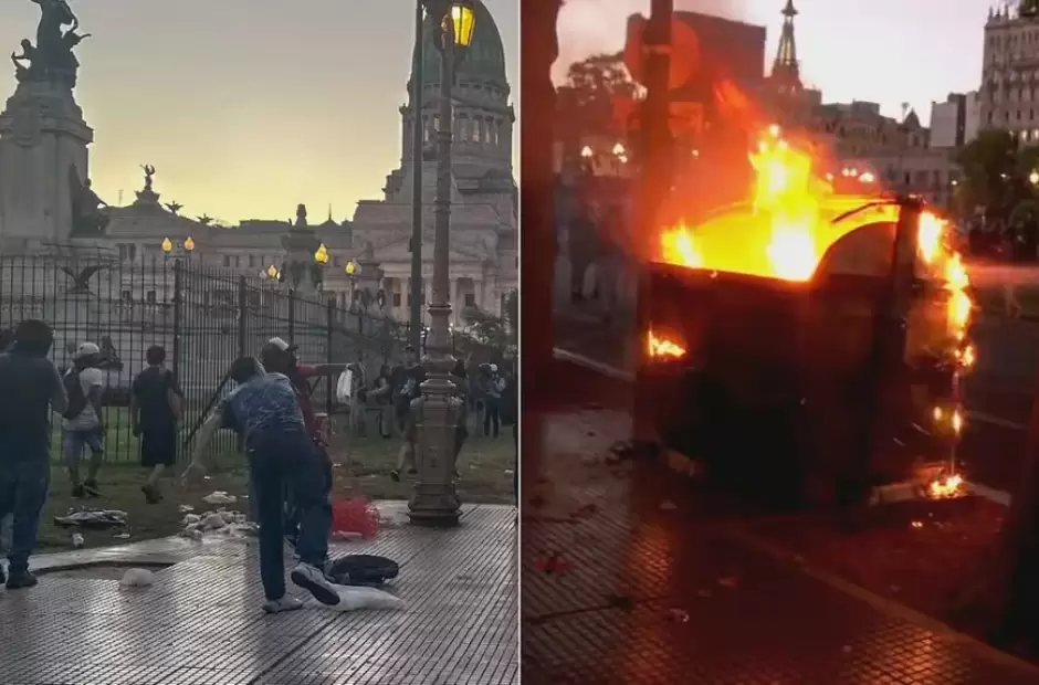 Tras la aprobación en general de la Ley Ómnibus, se viven momentos de tensión frente al Congreso, donde organizaciones de izquierda se manifiestan en rechazo al proyecto de oficialista que se votó en la Cámara de Diputados. El martes que viene se votará la ley en particular, artículo por artículo.