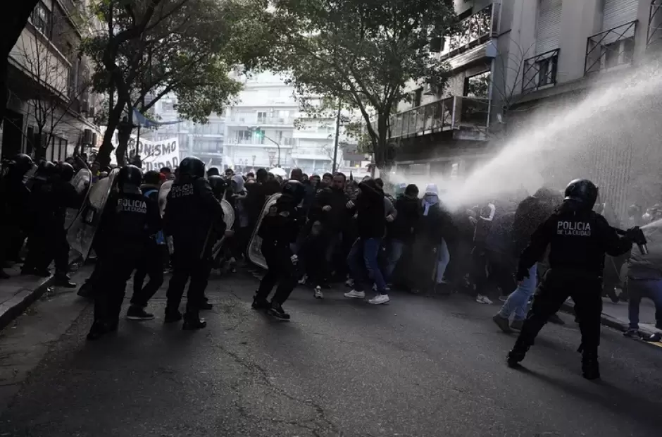 Un grupo de militantes logró burlar el cordón policial, hubo incidentes, y finalmente llegaron hasta el edificio donde reside la vicepresidenta, Cristina Kirchner. Tras los enfrentamientos y cuatro detenciones, el Jefe de Gabinete de la Ciudad, Felipe Miguel, dará una conferencia de prensa en el Ministerio de Seguridad.