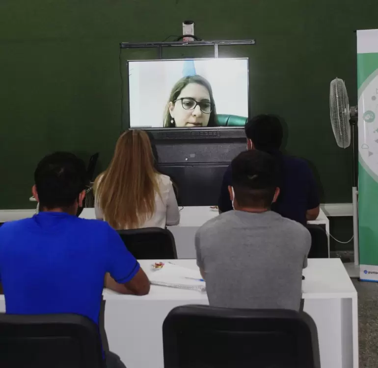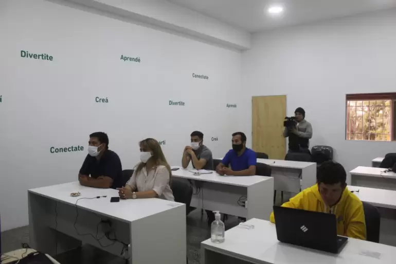 En instalaciones del Punto Digital se realizó una reunión virtual entre los Ministros de Gobierno, Justicia y Derechos Humanos Jorge Moreno, de Ciencia e Innovación Tecnológica Eugenia Rosales , de Planificación Susana Peralta, la intendente Roxana Paulón y el Presidente del Centro de Estudiantes del Instituto de Formación Docente de Fiambalá, Facundo Carrizo acompañados de alumnos del IES, con el objetivo de conocer la situación del centro educativo ante los anuncios del traspaso del mismo al Ministerio de Ciencia e Innovación Tecnológica.