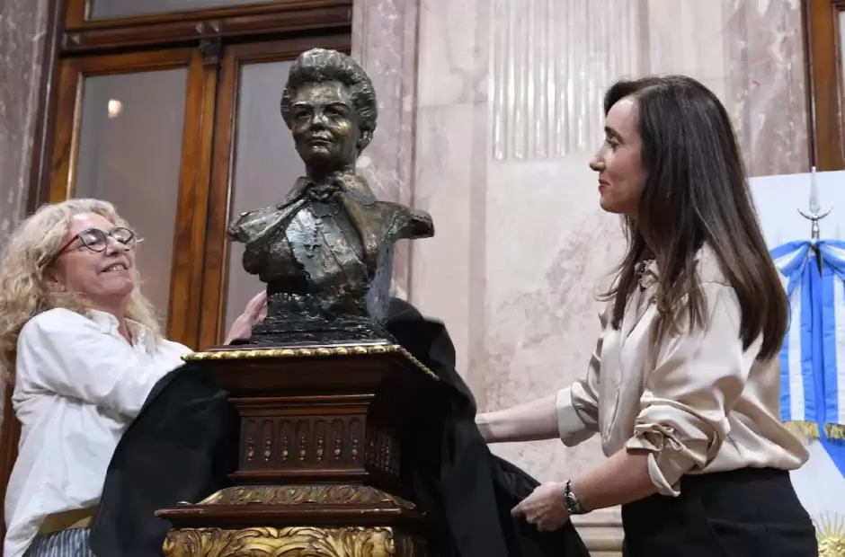 "Como presidenta del Senado de la Nación, vengo a inaugurar un busto de la primera mujer vicepresidenta de esta casa. Me refiero, sin dudas, a María Estela Martínez de Perón, quien luego fue también la primera mujer presidente constitucional de nuestra República y del mundo", comenzó su discurso Villarruel.