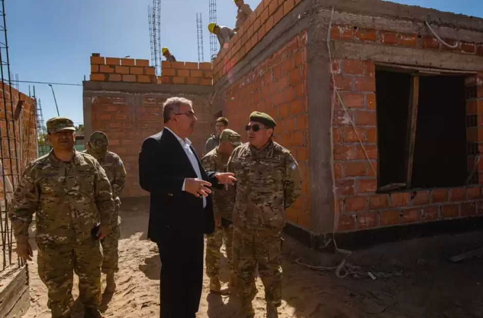 El gobernador Raúl Jalil junto al General Jorge Alberto Puebla, director de Infraestructura del Ejército Argentino, realizaron una visita para inspeccionar el progreso de las viviendas en construcción destinadas al Ejército en la zona sur de la Capital. Los primeros módulos habitacionales se construyen en el marco del proyecto de instalación del Ejército Argentino en Catamarca, que contempla la construcción de viviendas y el cuartel para albergar a 300 soldados.