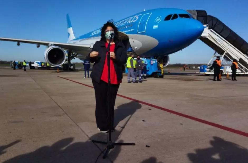 Vizzotti realizó declaraciones a la prensa al arribar esta mañana al aeropuerto de Ezeiza, con un cargamento de 650.000 dosis de vacuna Sputnik.
