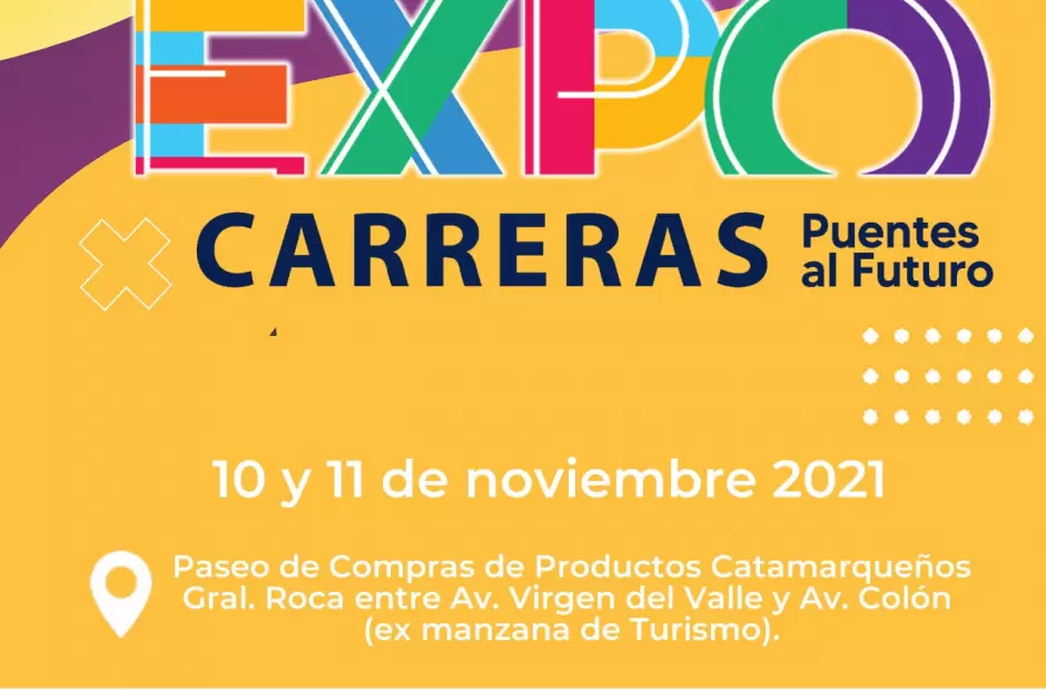 El Ministerio de Educación de la provincia a través de la Dirección de Educación Secundaria invita a estudiantes de 5º y 6º año a visitar la primera Feria “ExpoCarreras 2021: Puentes al futuro”, que brindará un acompañamiento integral a los futuros egresados. La misma, se llevará a cabo los días 10 y 11 de noviembre, en el predio del Paseo de Compras Catamarqueños, de 8 a 12 y de 16 a 20 horas.