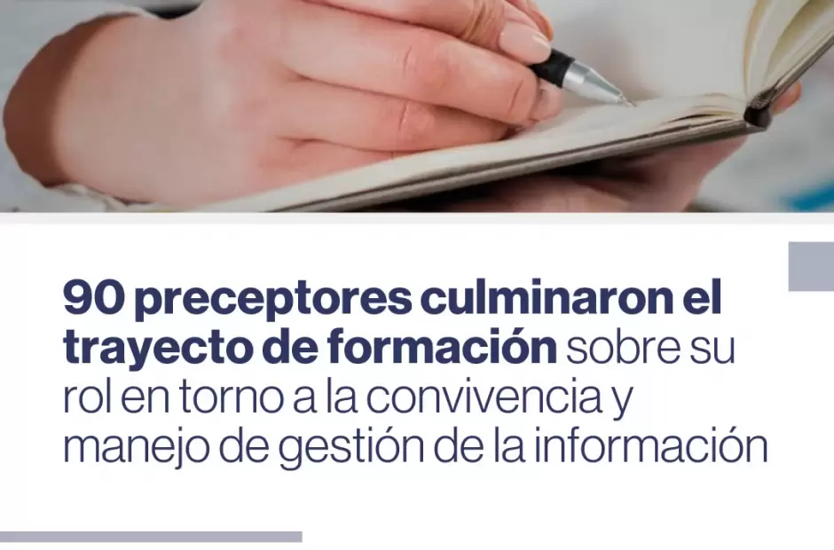 El Ministerio de Educación, a través de un trabajo articulado entre la direcciones de Educación a Distancia, Mediación Escolar y de Formación Profesional y de la Información y Evaluación Educativa, llevaron a cabo el segundo encuentro sincrónico del trayecto de formación titulado “El rol preceptor/a en torno a la convivencia y manejo de gestión de la información” por medio de la plataforma Meet, que culminó con la capacitación de 90 preceptores.