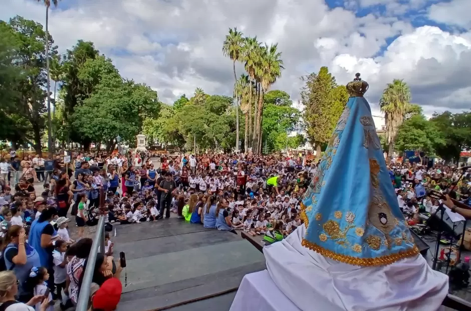 Uno de los momentos más emotivos de la tarde se vivió cuando la Virgen Morenita salió al atrio de la Catedral para recibir este tierno homenaje, gesto que se repite cada año y que, en esta oportunidad, volvió a renovarse con el mismo fervor y la misma entrega de siempre.