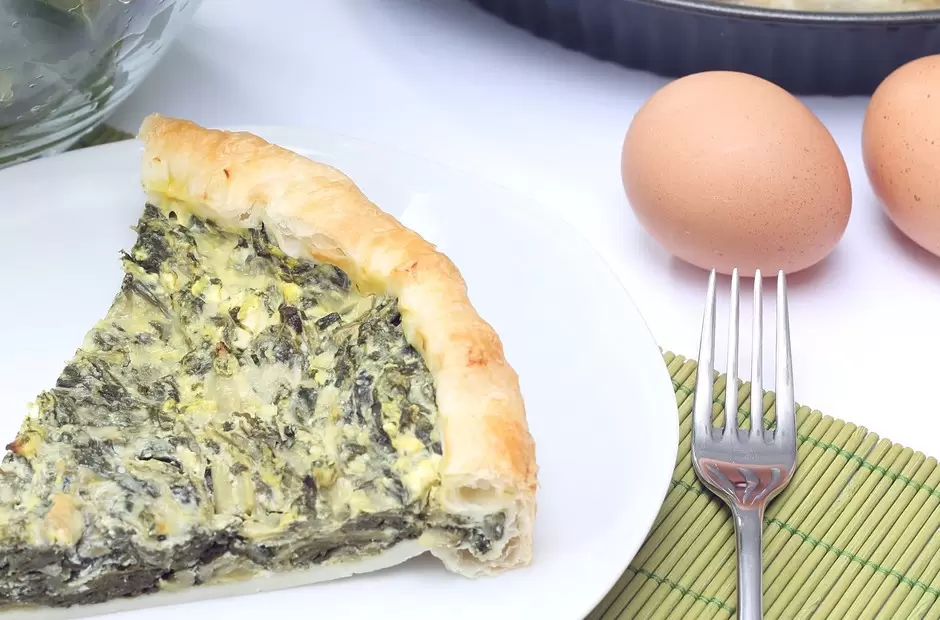Una clásica receta que se puede hacer tanto con acelga como con espinaca. Se caracteriza por sus pequeños huecos en el relleno donde se colocan huevos enteros que se cocinan dentro de la tarta.
