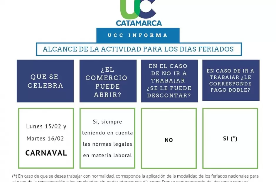 La Unión Comercial de Catamarca informó esta tarde, con el objetivo de resolver dudas, cuál será el alcance de la actividad a lo largo de los días feriados.